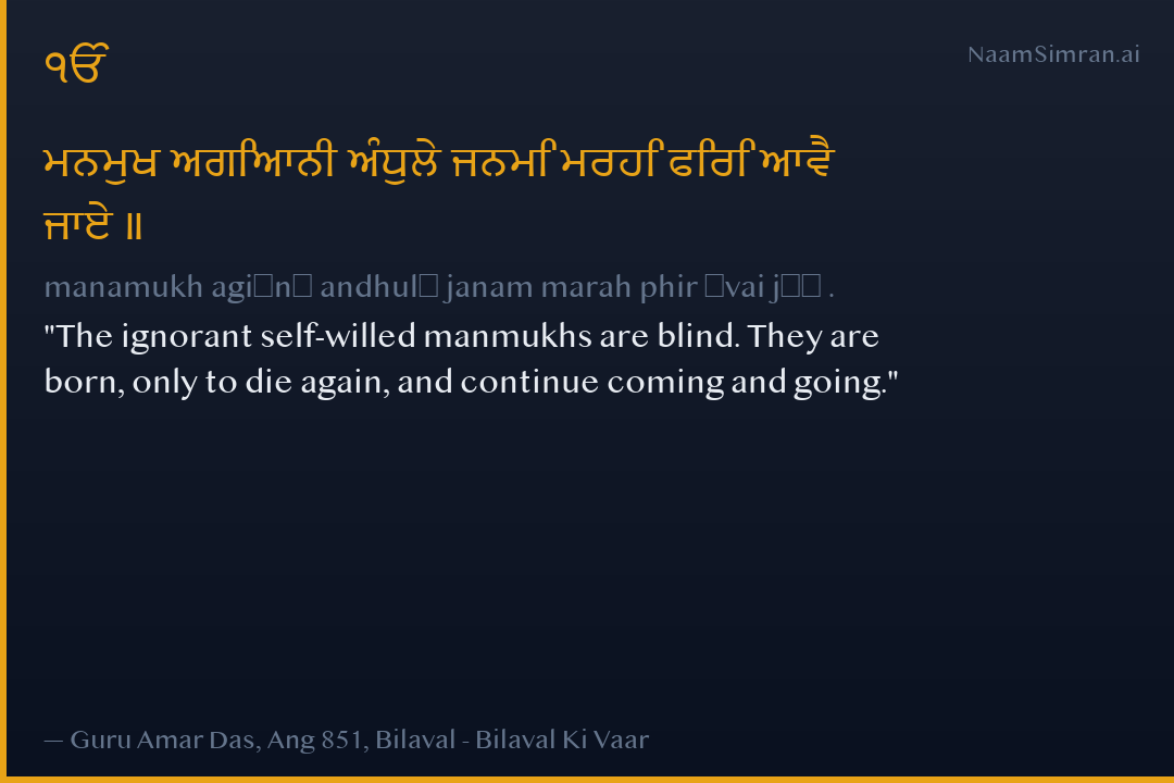 manamukh agiānī andhulē janam marah phir āvai jāē .