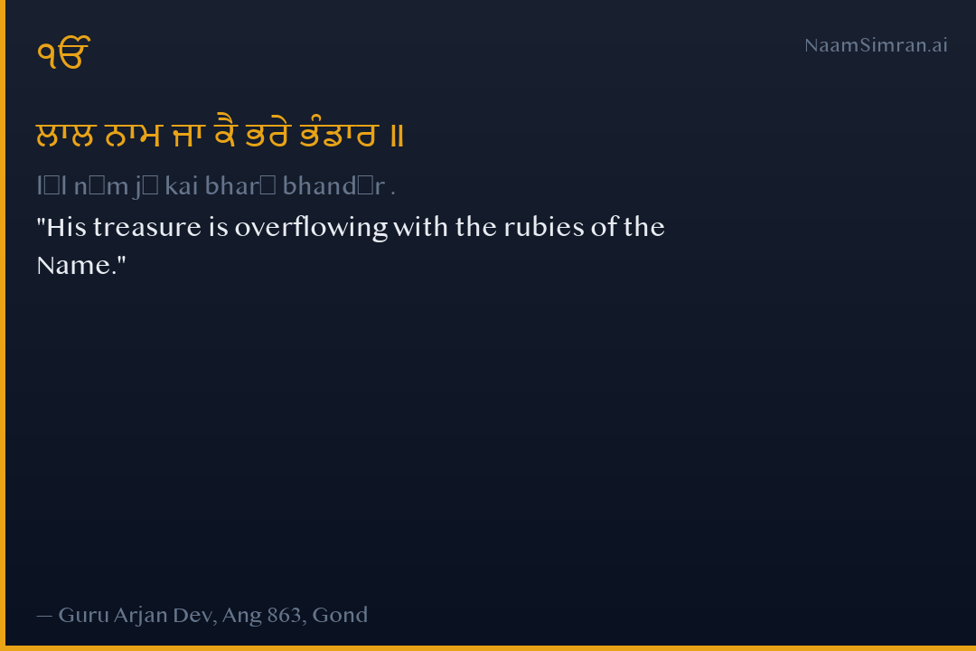 ਲਾਲ ਨਾਮ ਜਾ ਕੈ ਭਰੇ ਭੰਡਾਰ ॥
