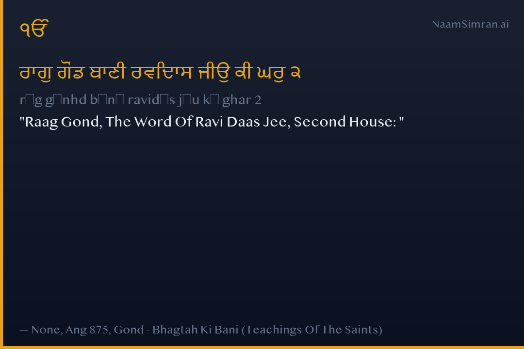 ਰਾਗੁ ਗੋਂਡ ਬਾਣੀ ਰਵਿਦਾਸ ਜੀਉ ਕੀ ਘਰੁ ੨