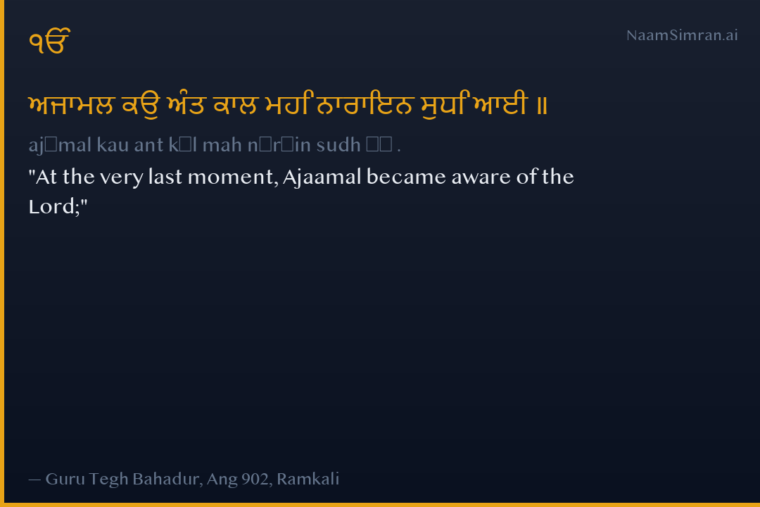 ਅਜਾਮਲ ਕਉ ਅੰਤ ਕਾਲ ਮਹਿ ਨਾਰਾਇਨ ਸੁਧਿ ਆਈ ॥