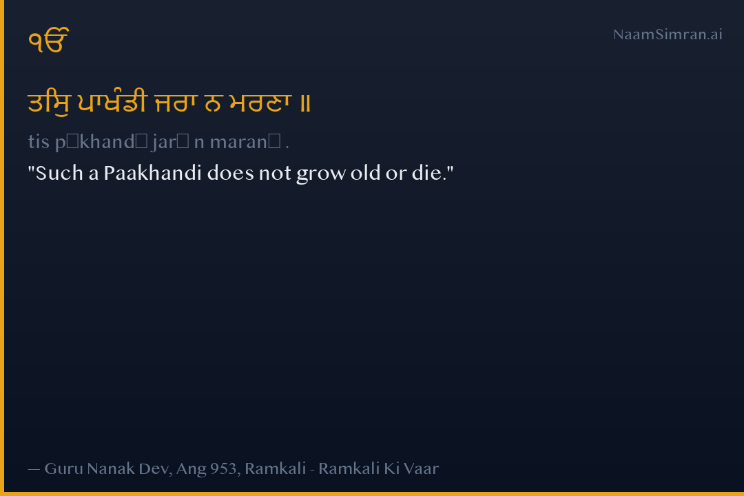 ਤਿਸੁ ਪਾਖੰਡੀ ਜਰਾ ਨ ਮਰਣਾ ॥