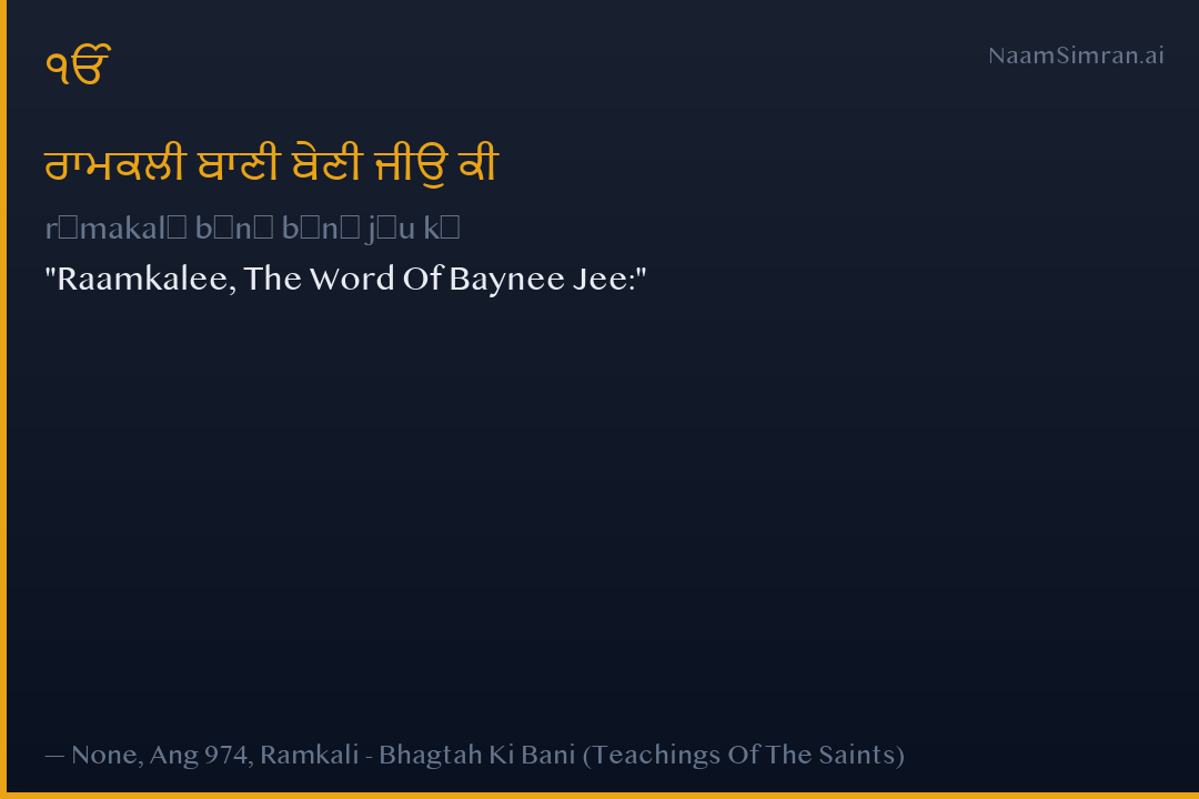 Raamkalee, The Word Of Baynee Jee: