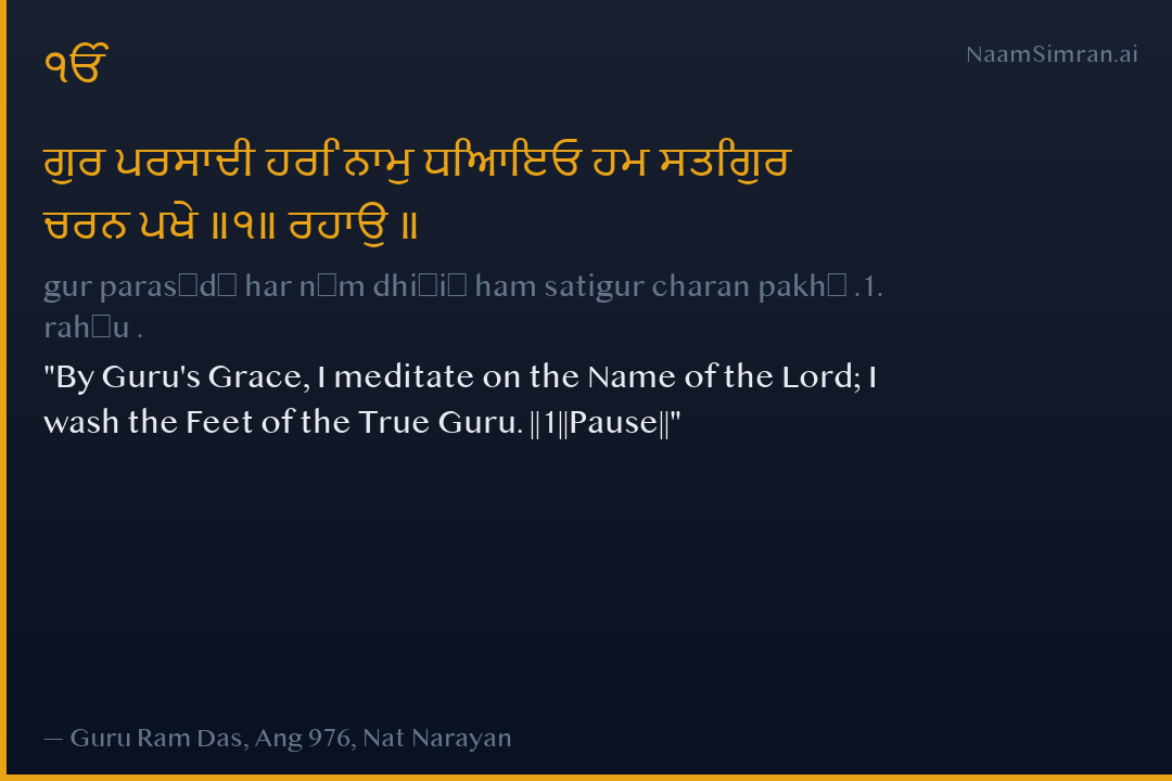 gur parasādī har nām dhiāiō ham satigur charan pakhē .1. rahāu .