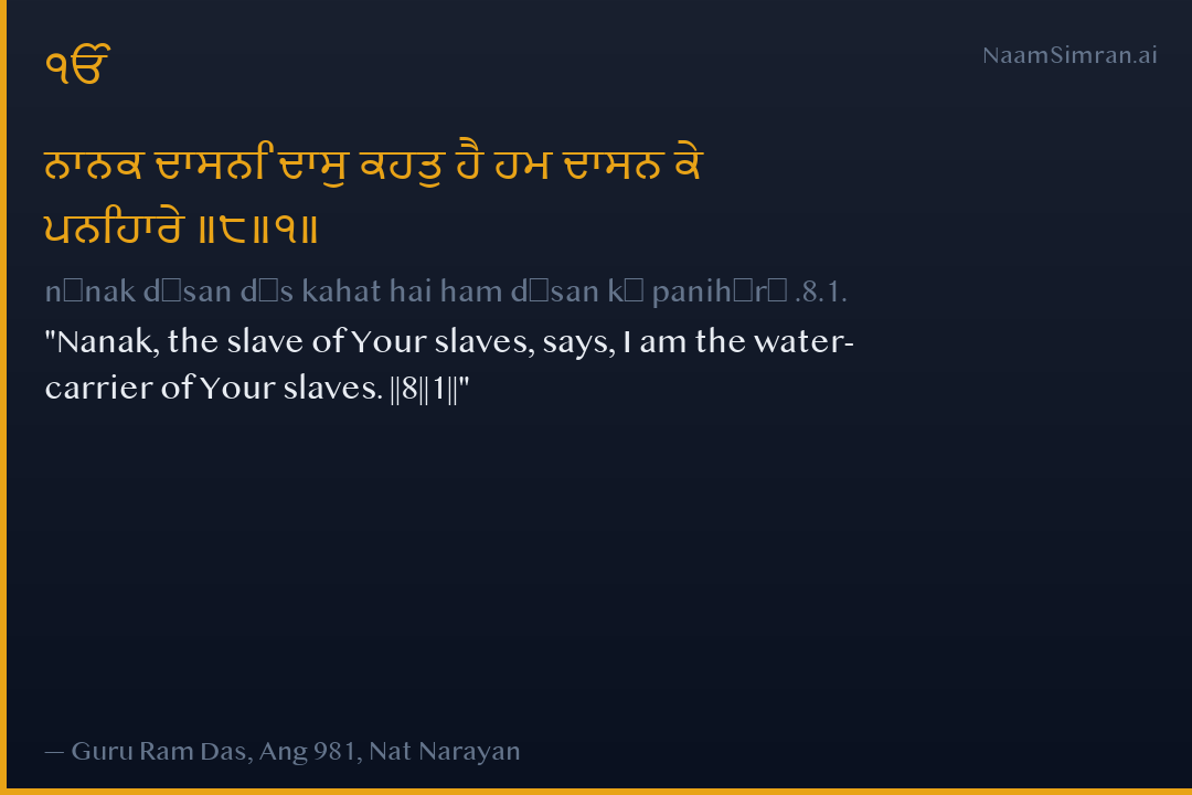 nānak dāsan dās kahat hai ham dāsan kē panihārē .8.1.