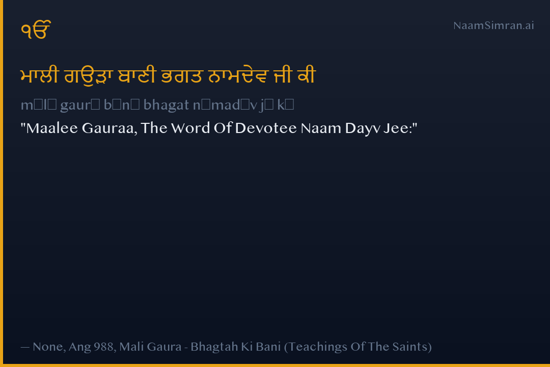 mālī gaurā bānī bhagat nāmadēv jī kī