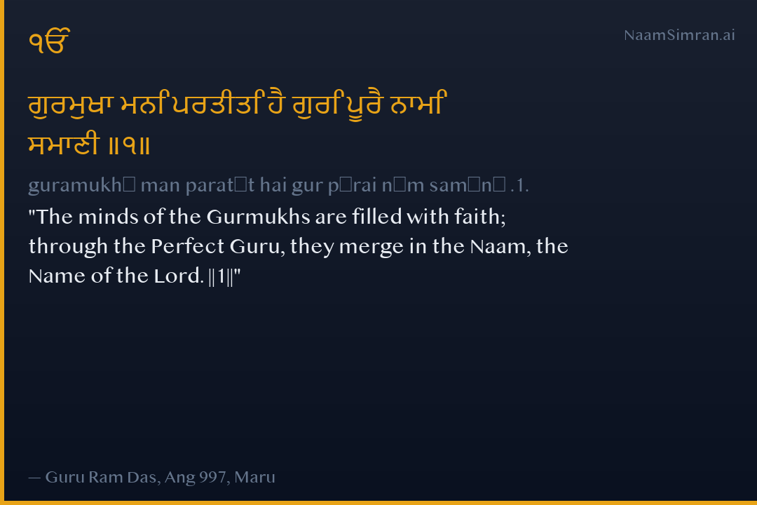 ਗੁਰਮੁਖਾ ਮਨਿ ਪਰਤੀਤਿ ਹੈ ਗੁਰਿ ਪੂਰੈ ਨਾਮਿ ਸਮਾਣੀ ॥੧॥