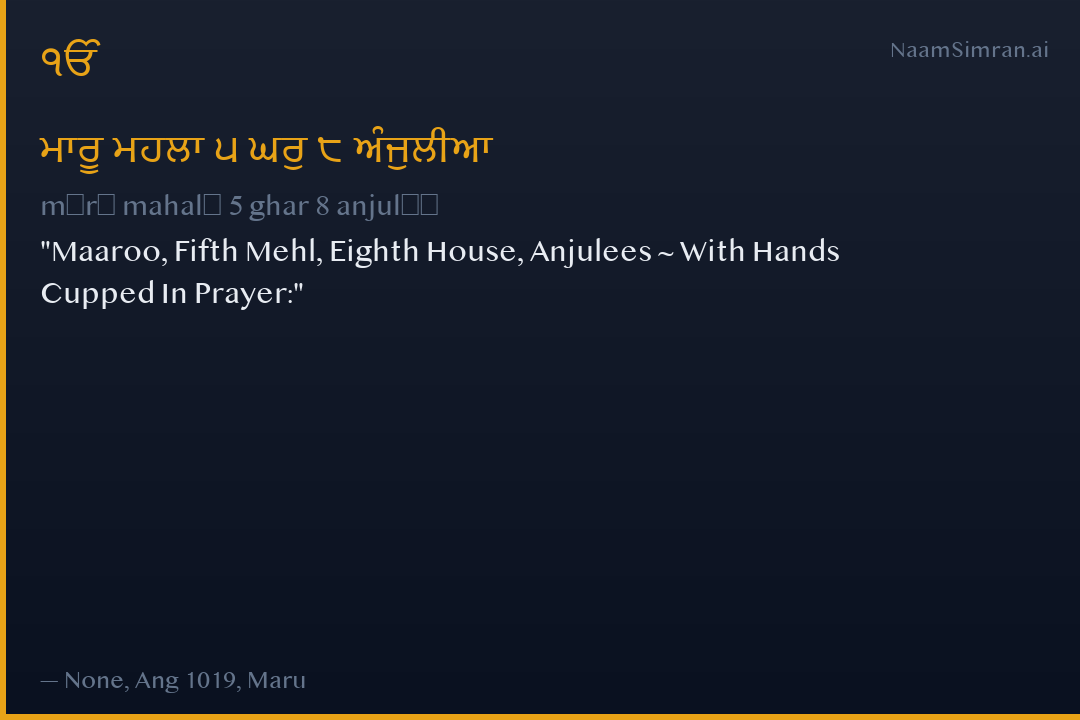 Maaroo, Fifth Mehl, Eighth House, Anjulees ~ With Hands Cupped In Prayer: