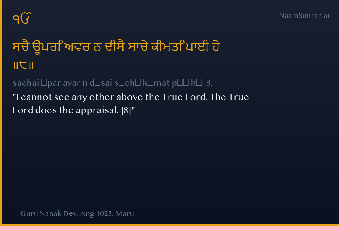ਸਚੈ ਊਪਰਿ ਅਵਰ ਨ ਦੀਸੈ ਸਾਚੇ ਕੀਮਤਿ ਪਾਈ ਹੇ ॥੮॥