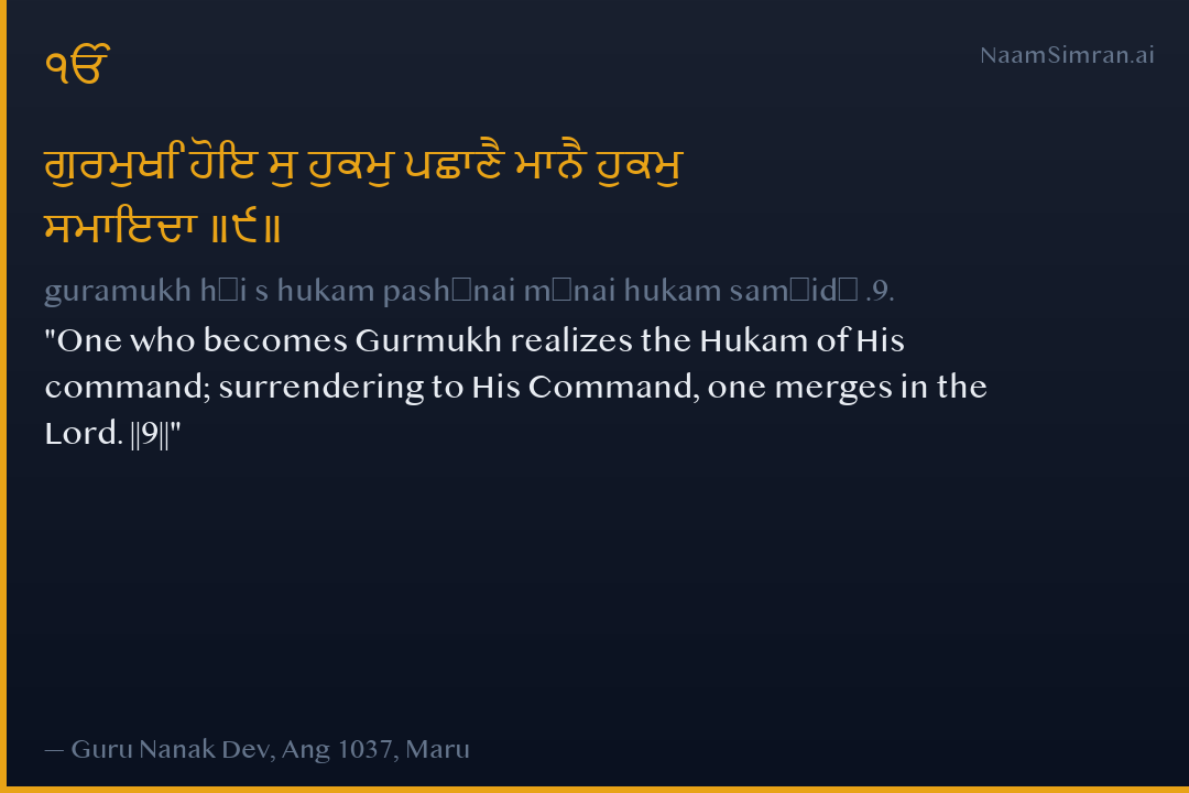 ਗੁਰਮੁਖਿ ਹੋਇ ਸੁ ਹੁਕਮੁ ਪਛਾਣੈ ਮਾਨੈ ਹੁਕਮੁ ਸਮਾਇਦਾ ॥੯॥