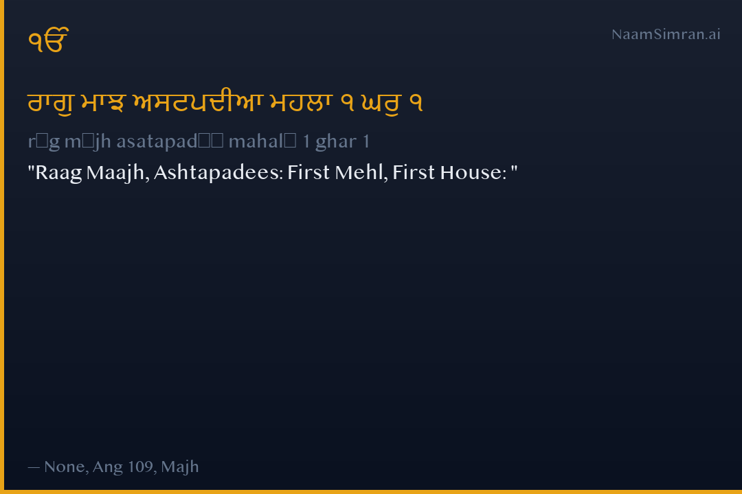 rāg mājh asatapadīā mahalā 1 ghar 1