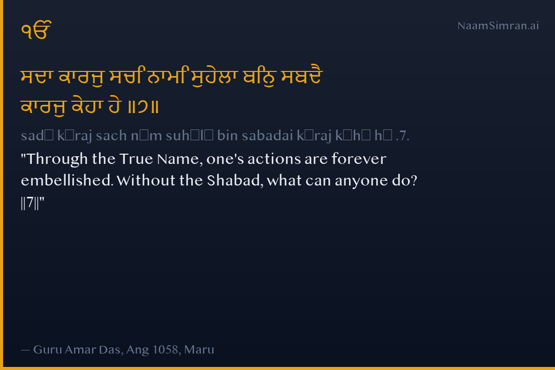 sadā kāraj sach nām suhēlā bin sabadai kāraj kēhā hē .7.
