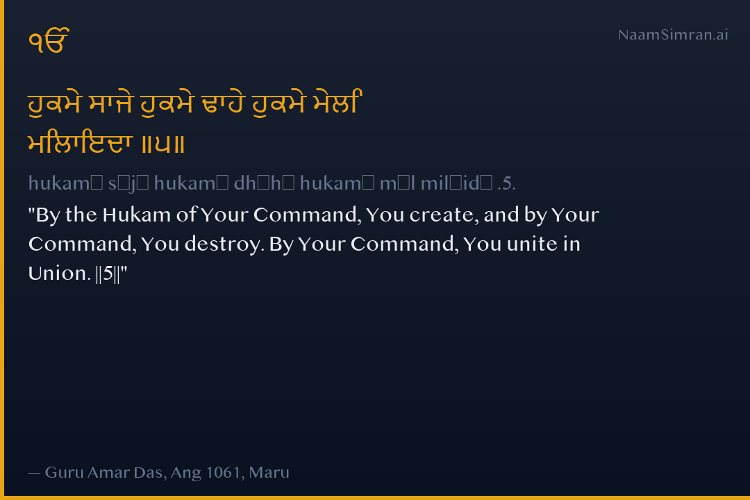 hukamē sājē hukamē dhāhē hukamē mēl milāidā .5.