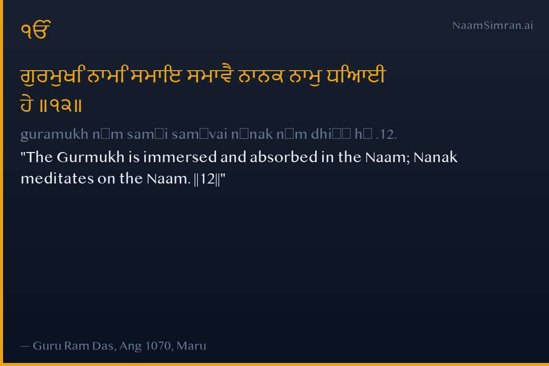 The Gurmukh is immersed and absorbed in the Naam; Nanak meditates on the Naam. ||12||