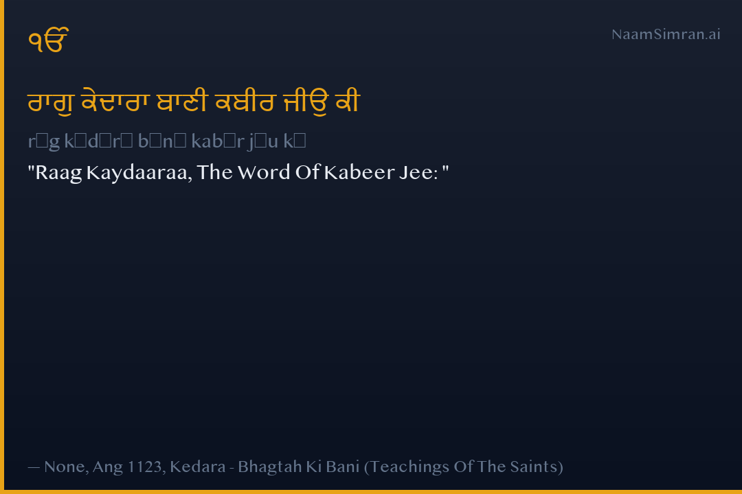Raag Kaydaaraa, The Word Of Kabeer Jee:
