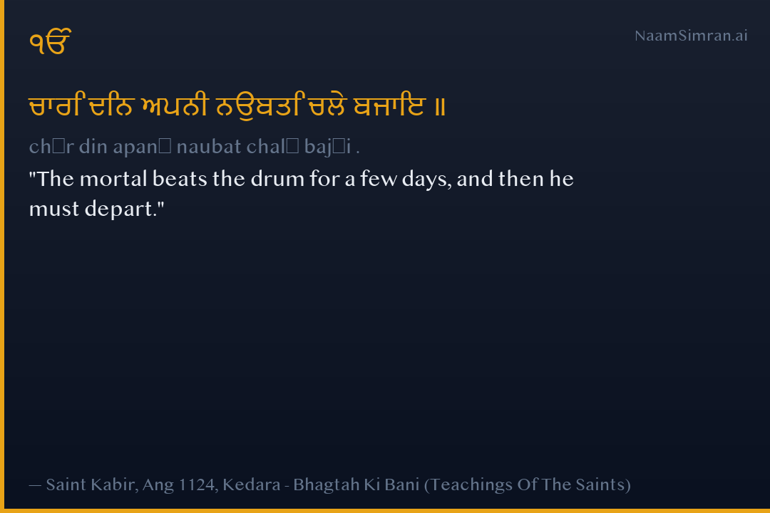 ਚਾਰਿ ਦਿਨ ਅਪਨੀ ਨਉਬਤਿ ਚਲੇ ਬਜਾਇ ॥
