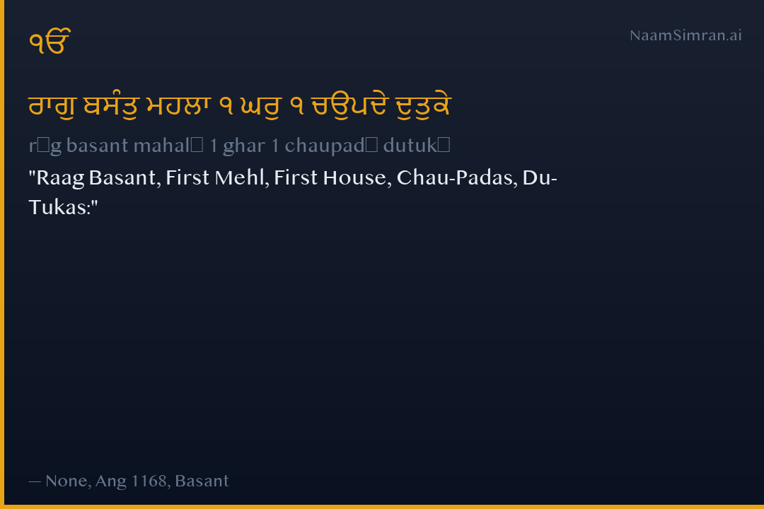 Raag Basant, First Mehl, First House, Chau-Padas, Du-Tukas: