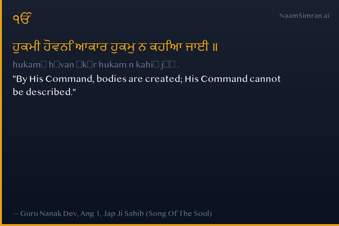 hukamī hōvan ākār hukam n kahiā jāī .