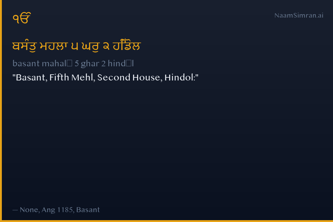 Basant, Fifth Mehl, Second House, Hindol: