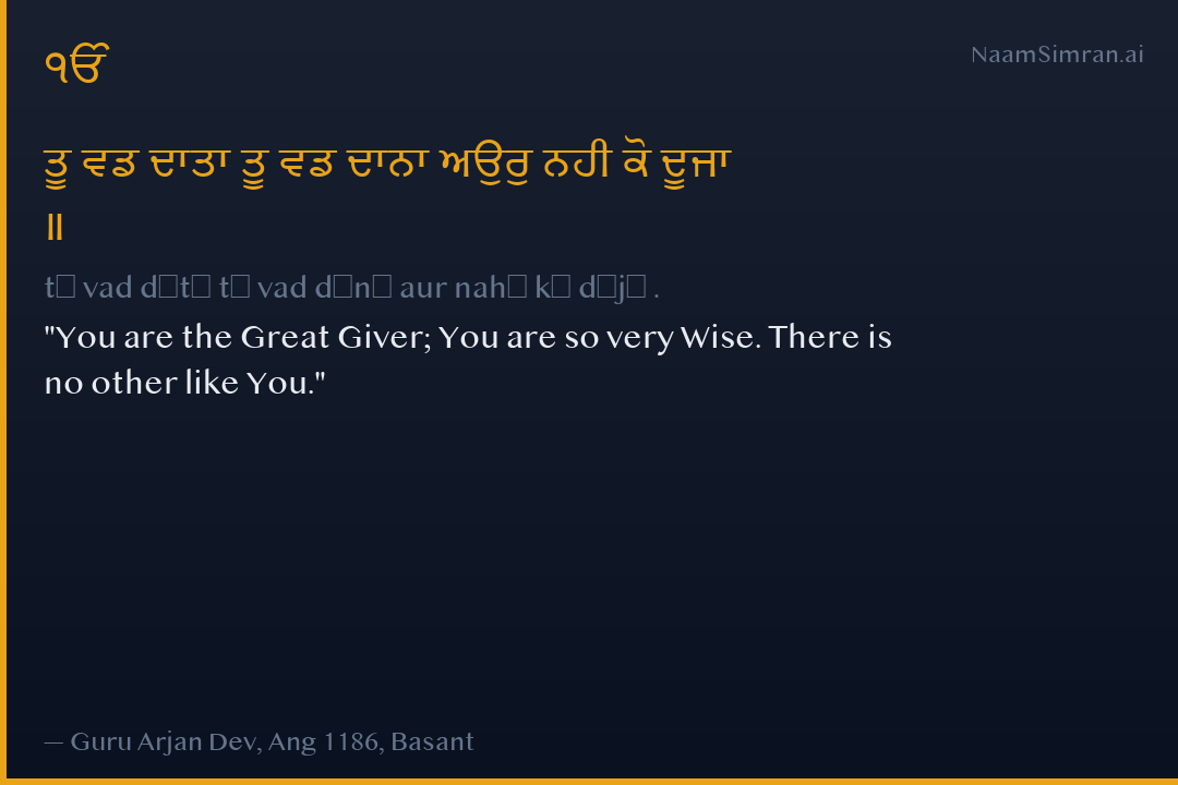 ਤੂ ਵਡ ਦਾਤਾ ਤੂ ਵਡ ਦਾਨਾ ਅਉਰੁ ਨਹੀ ਕੋ ਦੂਜਾ ॥