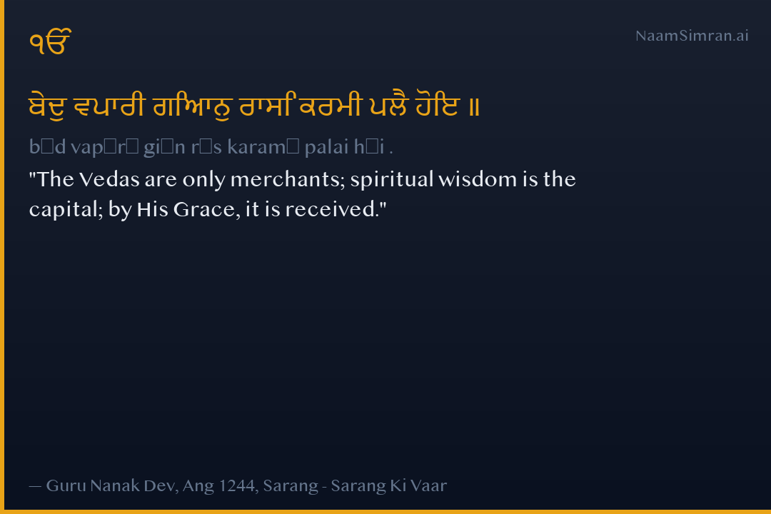The Vedas are only merchants; spiritual wisdom is the capital; by His Grace, it is received.