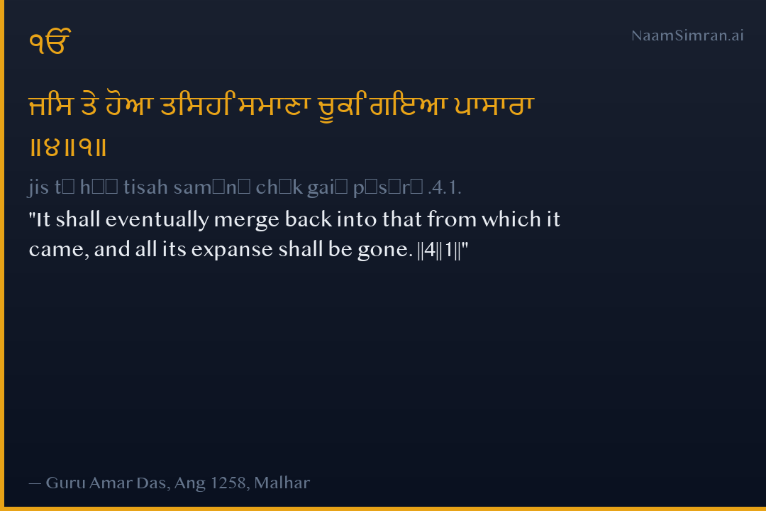 ਜਿਸ ਤੇ ਹੋਆ ਤਿਸਹਿ ਸਮਾਣਾ ਚੂਕਿ ਗਇਆ ਪਾਸਾਰਾ ॥੪॥੧॥