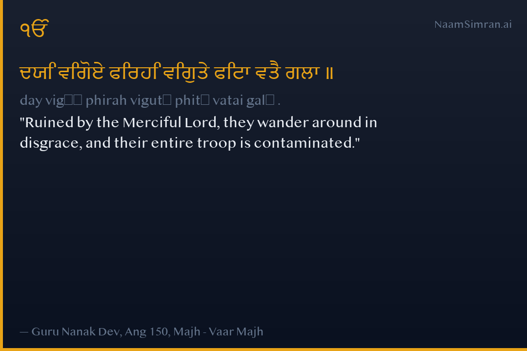 ਦਯਿ ਵਿਗੋਏ ਫਿਰਹਿ ਵਿਗੁਤੇ ਫਿਟਾ ਵਤੈ ਗਲਾ ॥