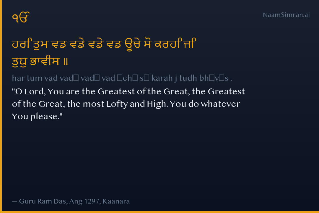 har tum vad vadē vadē vad ūchē sō karah j tudh bhāvīs .