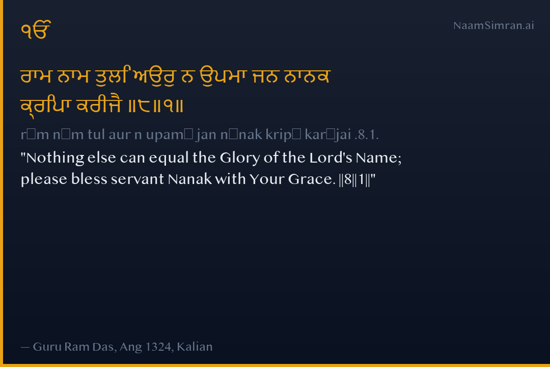 rām nām tul aur n upamā jan nānak kripā karījai .8.1.
