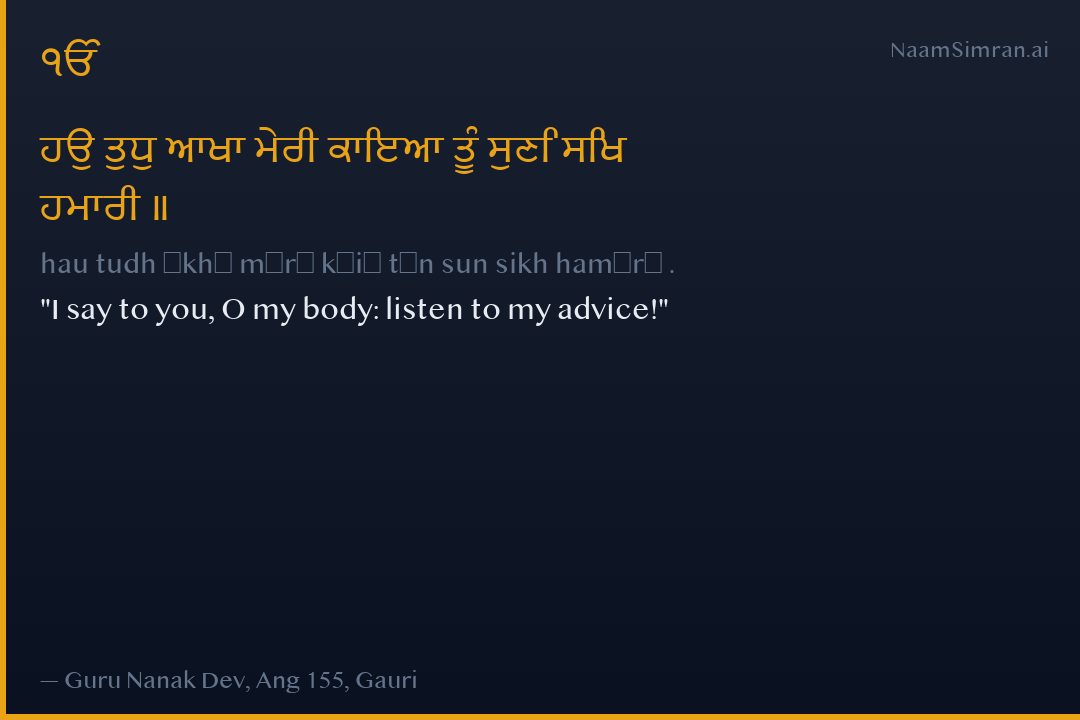 ਹਉ ਤੁਧੁ ਆਖਾ ਮੇਰੀ ਕਾਇਆ ਤੂੰ ਸੁਣਿ ਸਿਖ ਹਮਾਰੀ ॥