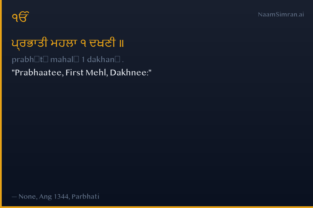 ਪ੍ਰਭਾਤੀ ਮਹਲਾ ੧ ਦਖਣੀ ॥
