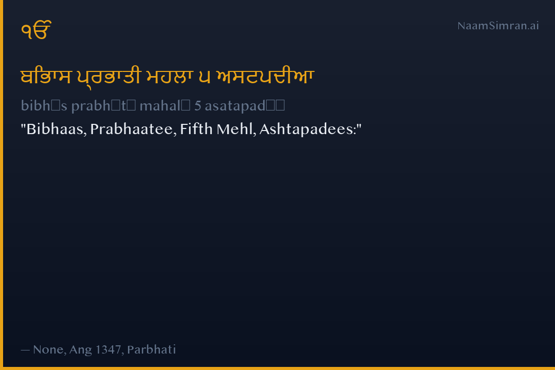 Bibhaas, Prabhaatee, Fifth Mehl, Ashtapadees: