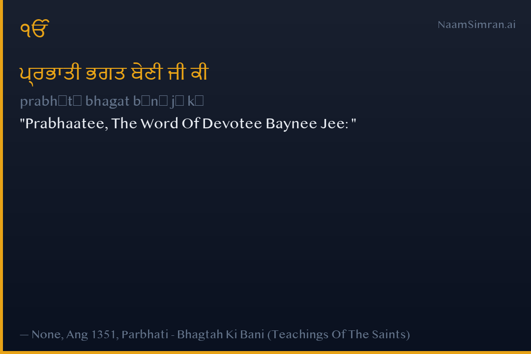 Prabhaatee, The Word Of Devotee Baynee Jee: