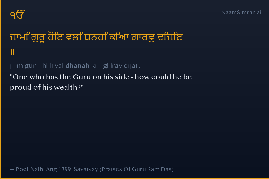 jām gurū hōi val dhanah kiā gārav dijai .