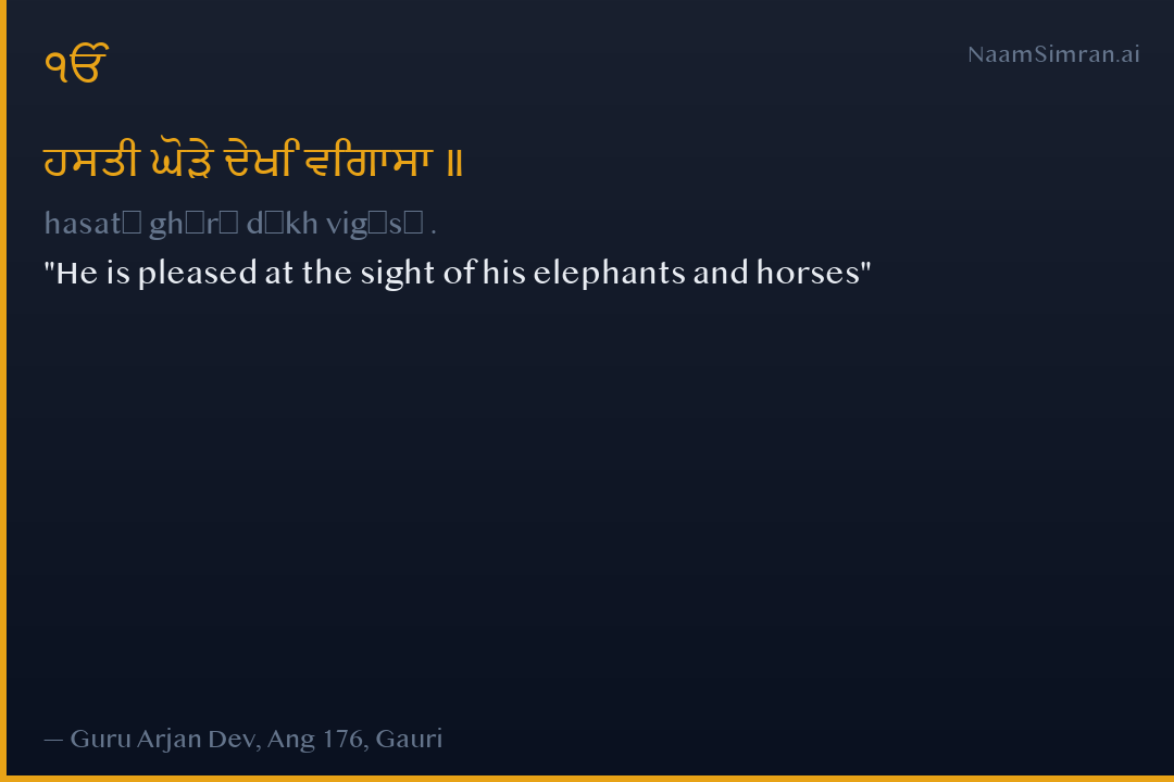 ਹਸਤੀ ਘੋੜੇ ਦੇਖਿ ਵਿਗਾਸਾ ॥