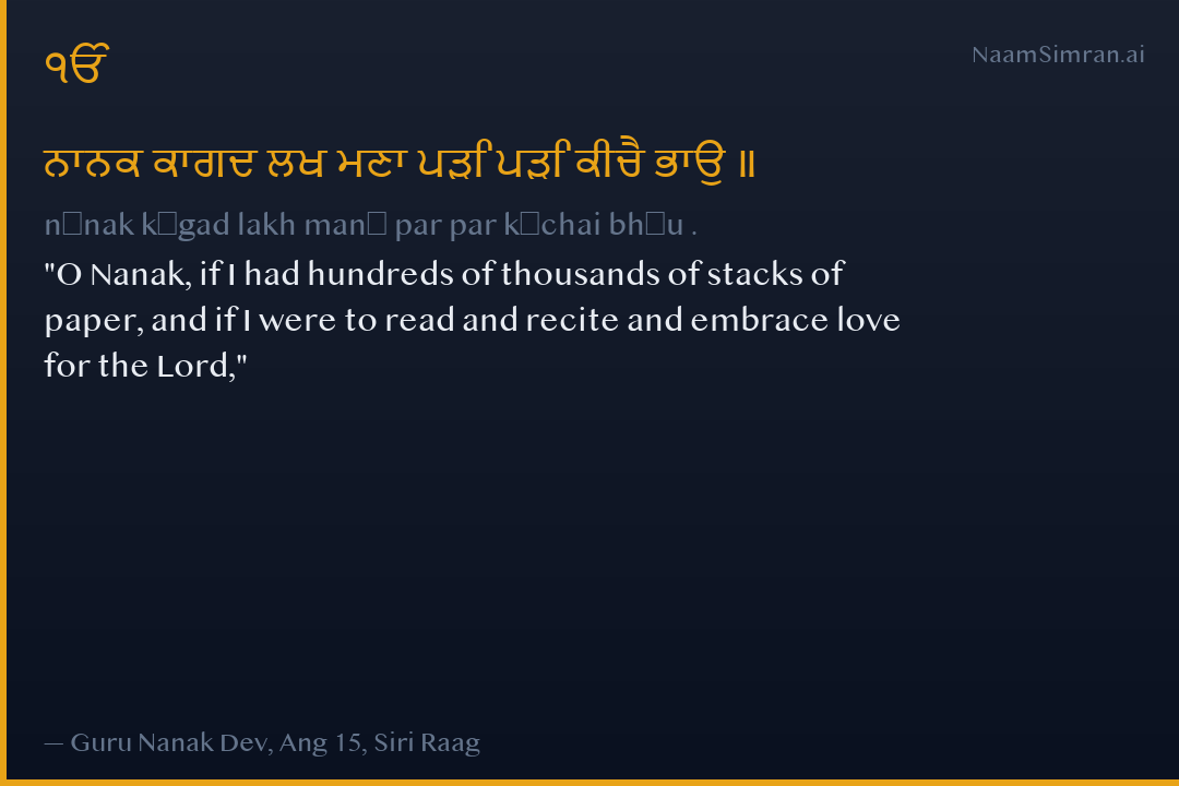 O Nanak, if I had hundreds of thousands of stacks of paper, and if I were to read and recite and embrace love for the Lord,