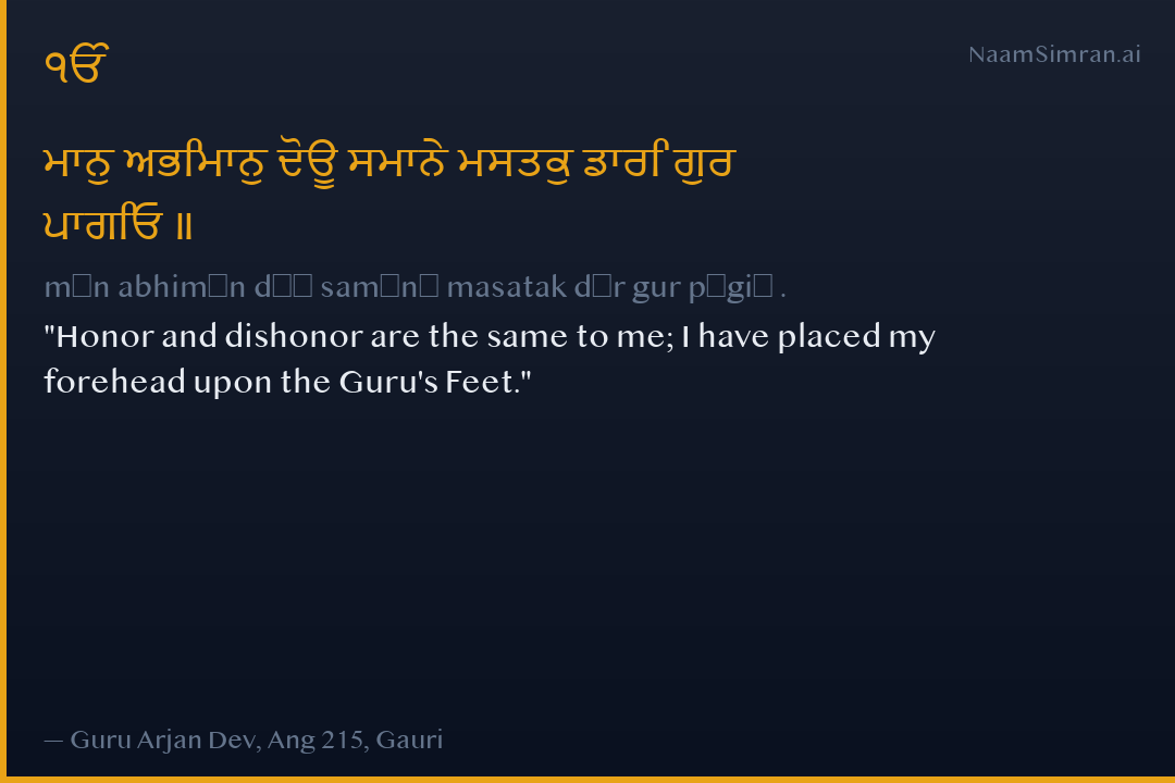 Honor and dishonor are the same to me; I have placed my forehead upon the Guru's Feet.