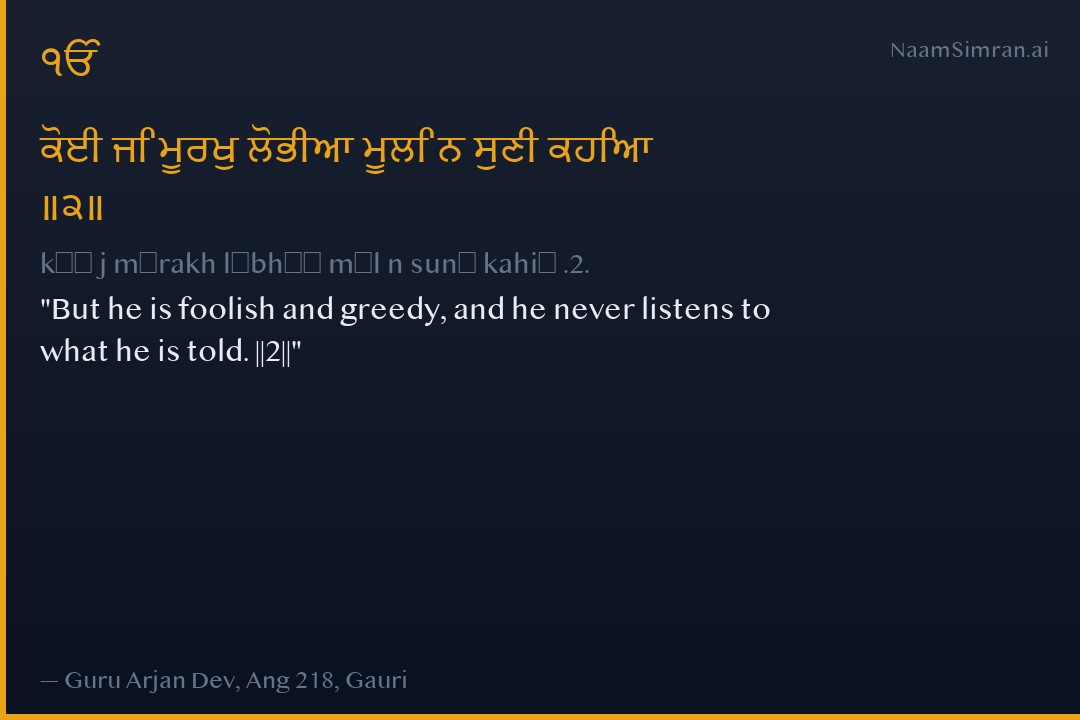 kōī j mūrakh lōbhīā mūl n sunī kahiā .2.