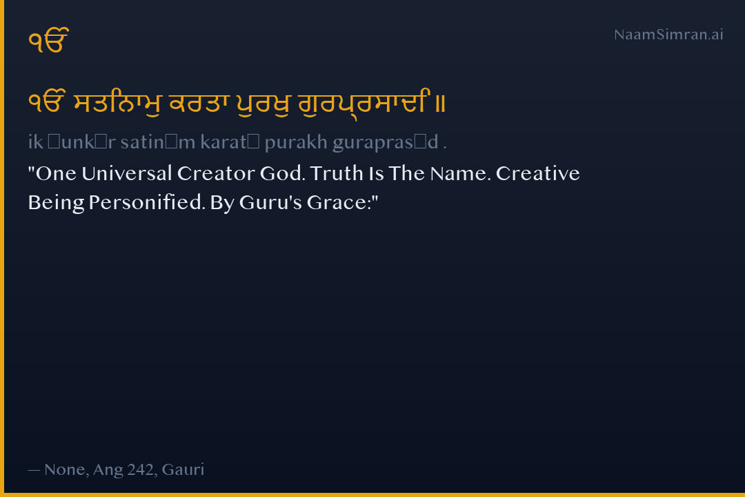 ੴ ਸਤਿਨਾਮੁ ਕਰਤਾ ਪੁਰਖੁ ਗੁਰਪ੍ਰਸਾਦਿ ॥