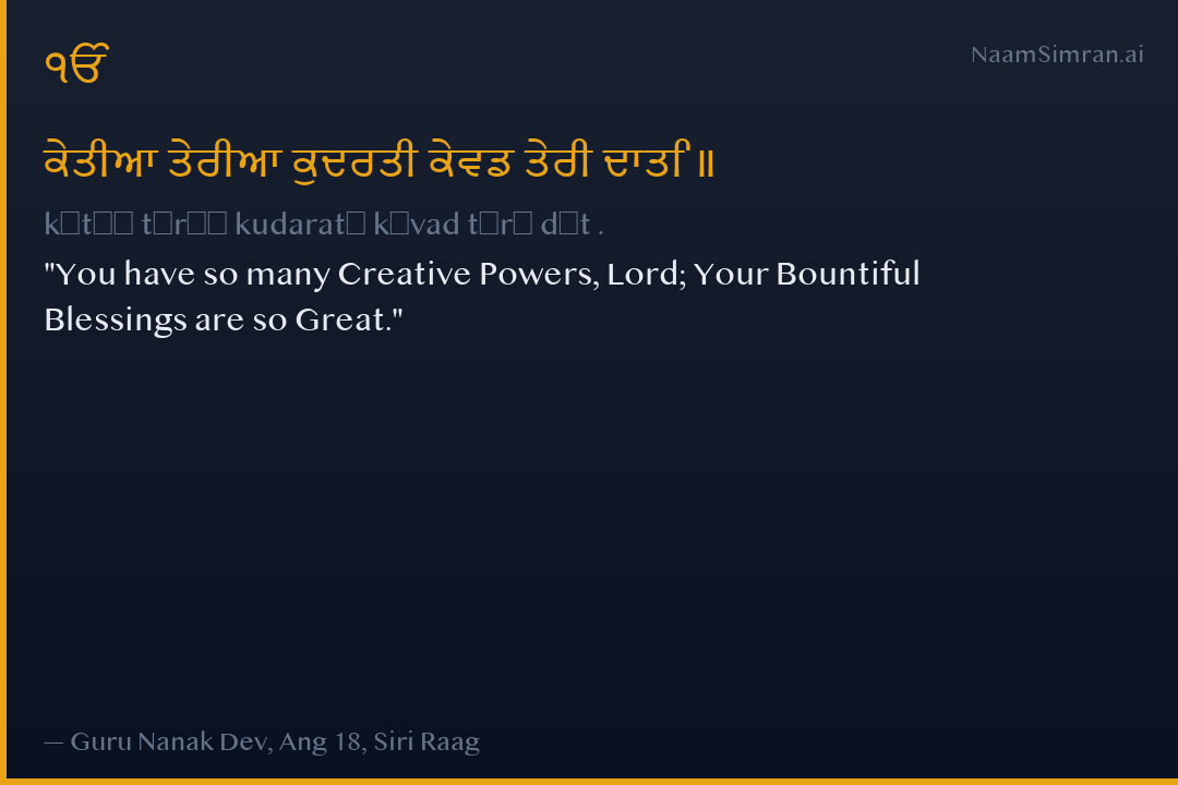 ਕੇਤੀਆ ਤੇਰੀਆ ਕੁਦਰਤੀ ਕੇਵਡ ਤੇਰੀ ਦਾਤਿ ॥