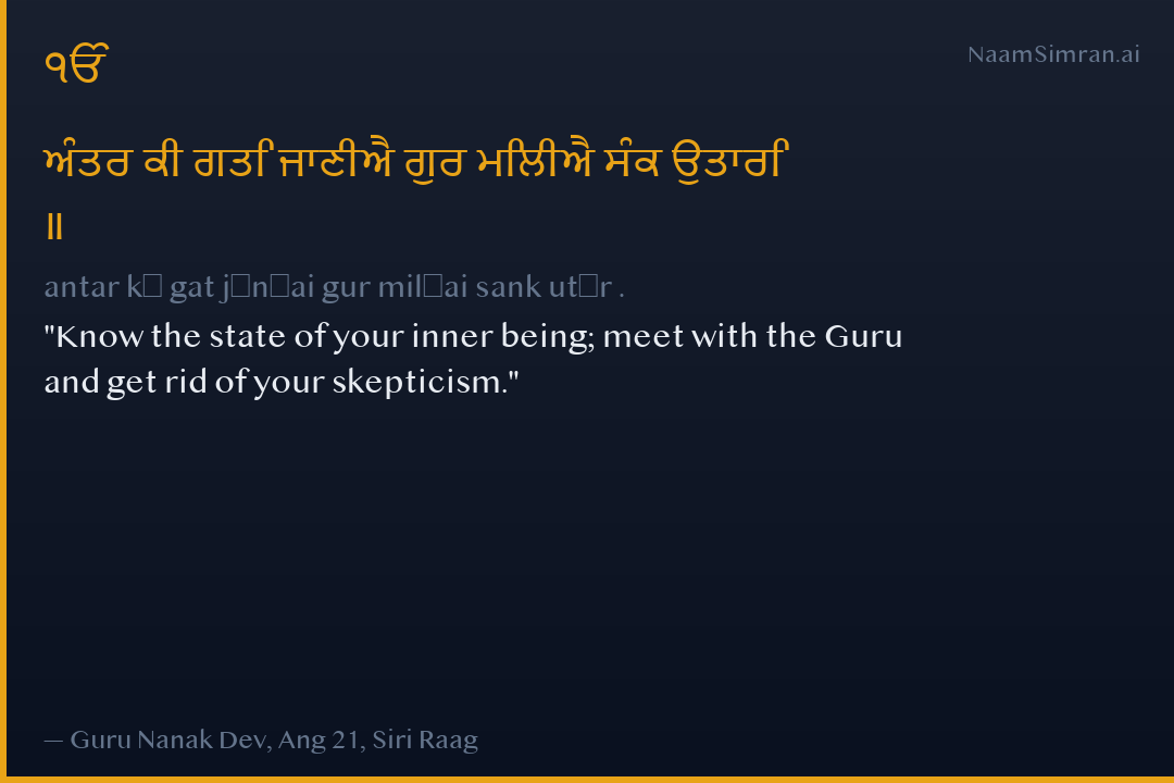 ਅੰਤਰ ਕੀ ਗਤਿ ਜਾਣੀਐ ਗੁਰ ਮਿਲੀਐ ਸੰਕ ਉਤਾਰਿ ॥