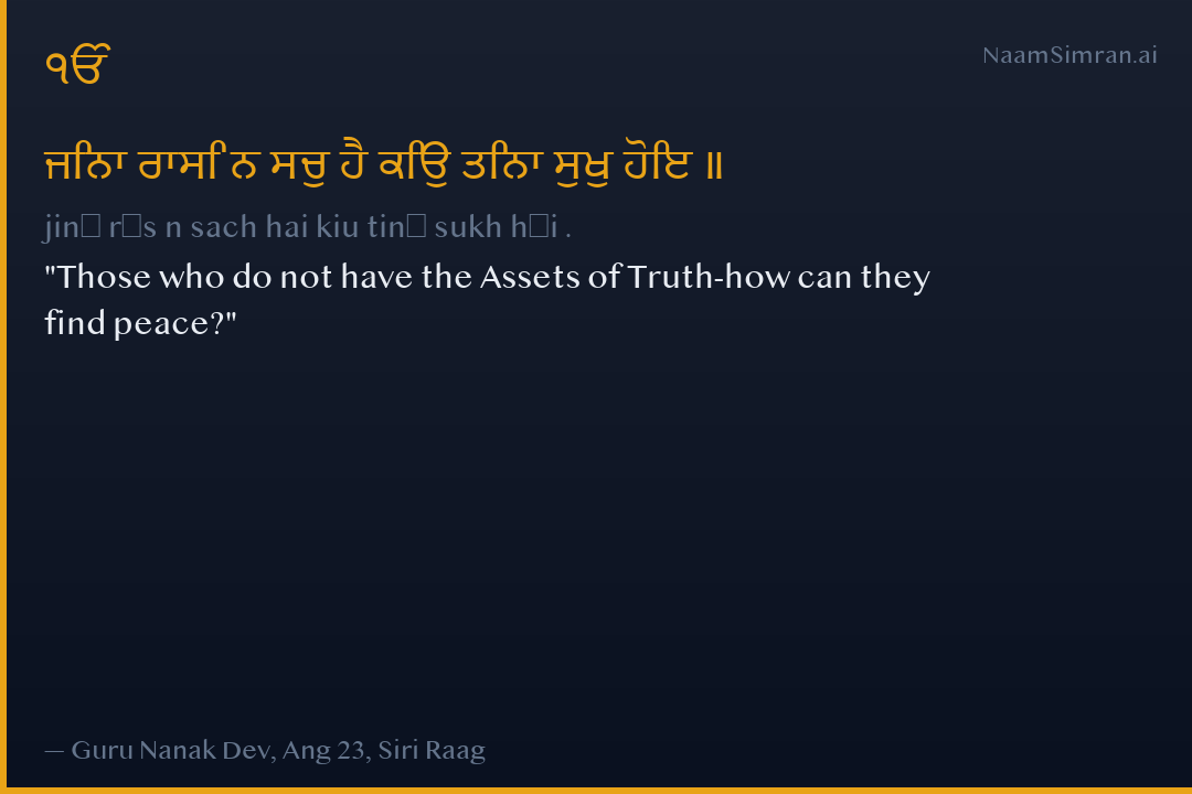 ਜਿਨਾ ਰਾਸਿ ਨ ਸਚੁ ਹੈ ਕਿਉ ਤਿਨਾ ਸੁਖੁ ਹੋਇ ॥