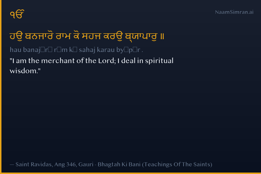 kō banajārō rām kō mērā tānhdā lādiā jāi rē .1. rahāu .