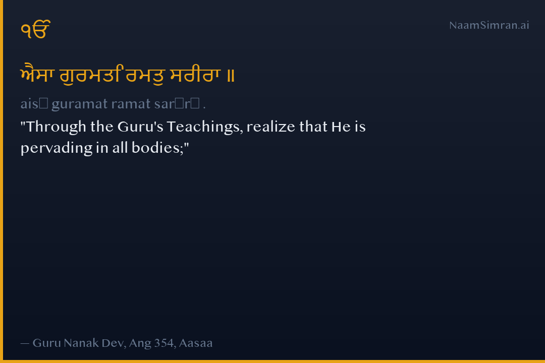 Through the Guru's Teachings, realize that He is pervading in all bodies;